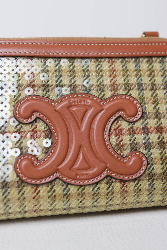 CELINE Clutch On Chain Bag Sequin Tweed
