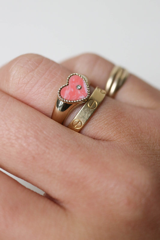 Yvonne Léon Mini Coeur Heart Ring Coral