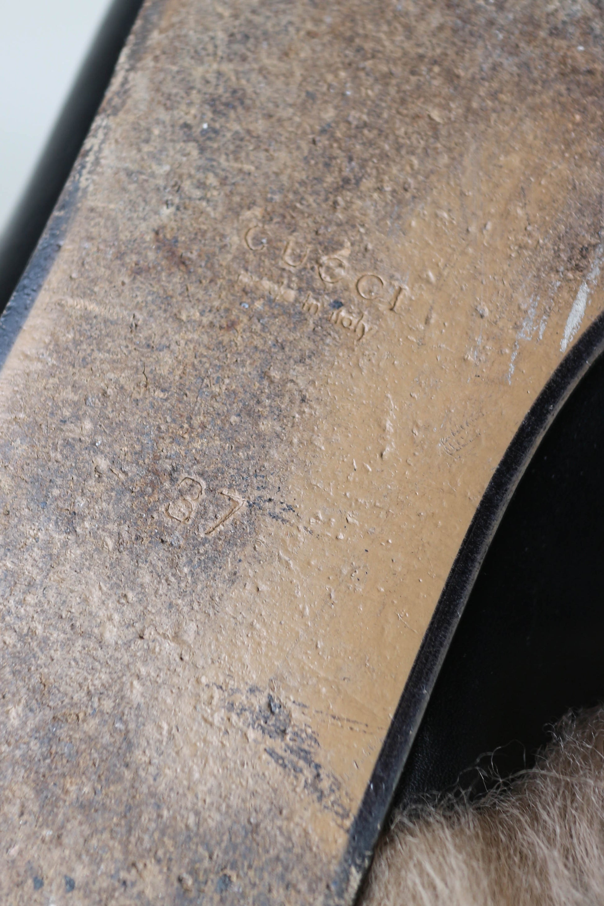 Size: 37 - true to size - inner sole length: 24,5 cm - sole height: 1 cm. Material: 100% fur and leather. Hardware: gold. Condition: very good condition (overall light signs of wear on the leather and soles). Packaging: original dustbags.